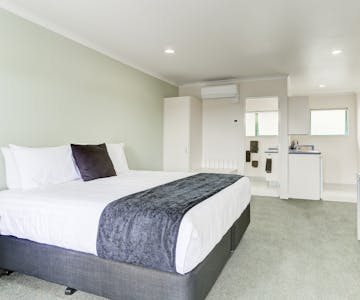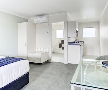 Our studio units are large and have a king bed. Studio rooms sleep max 2 people. We also have twin studio rooms which have a queen bed & one single bed, sleeps max 3 people. All our studios have a microwave, fridge, Sky TV & DVD player. Wireless internet access is available.