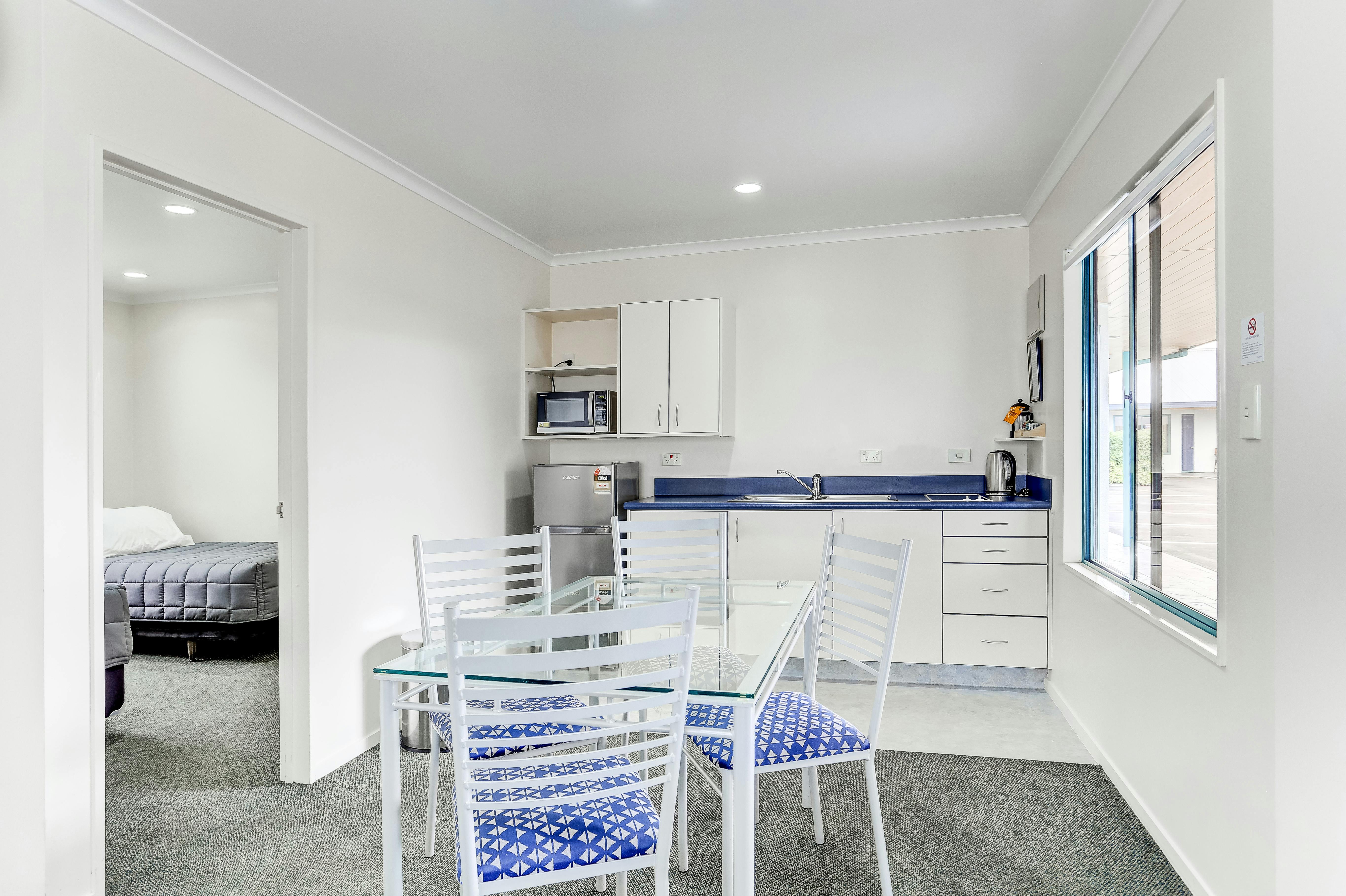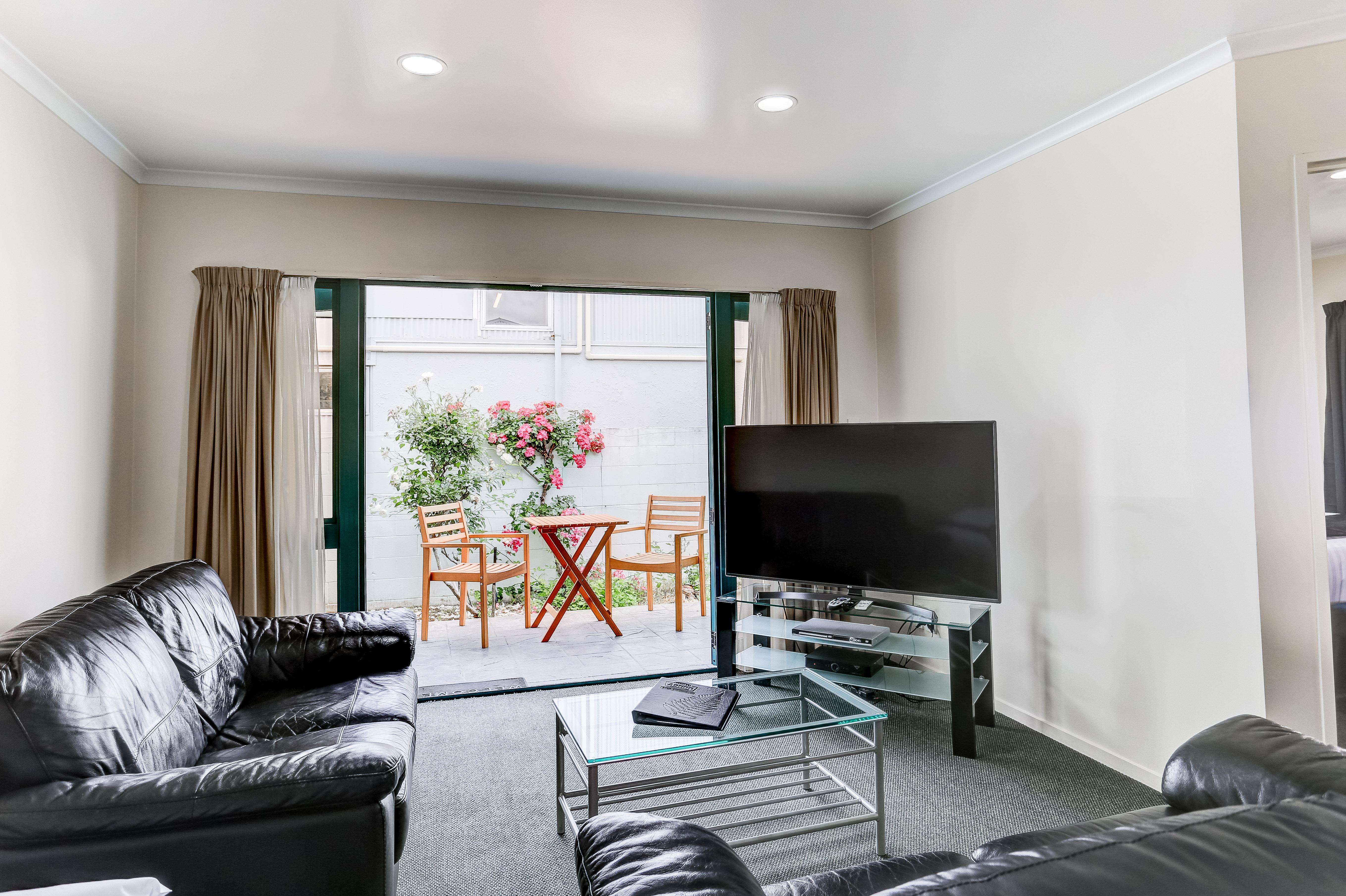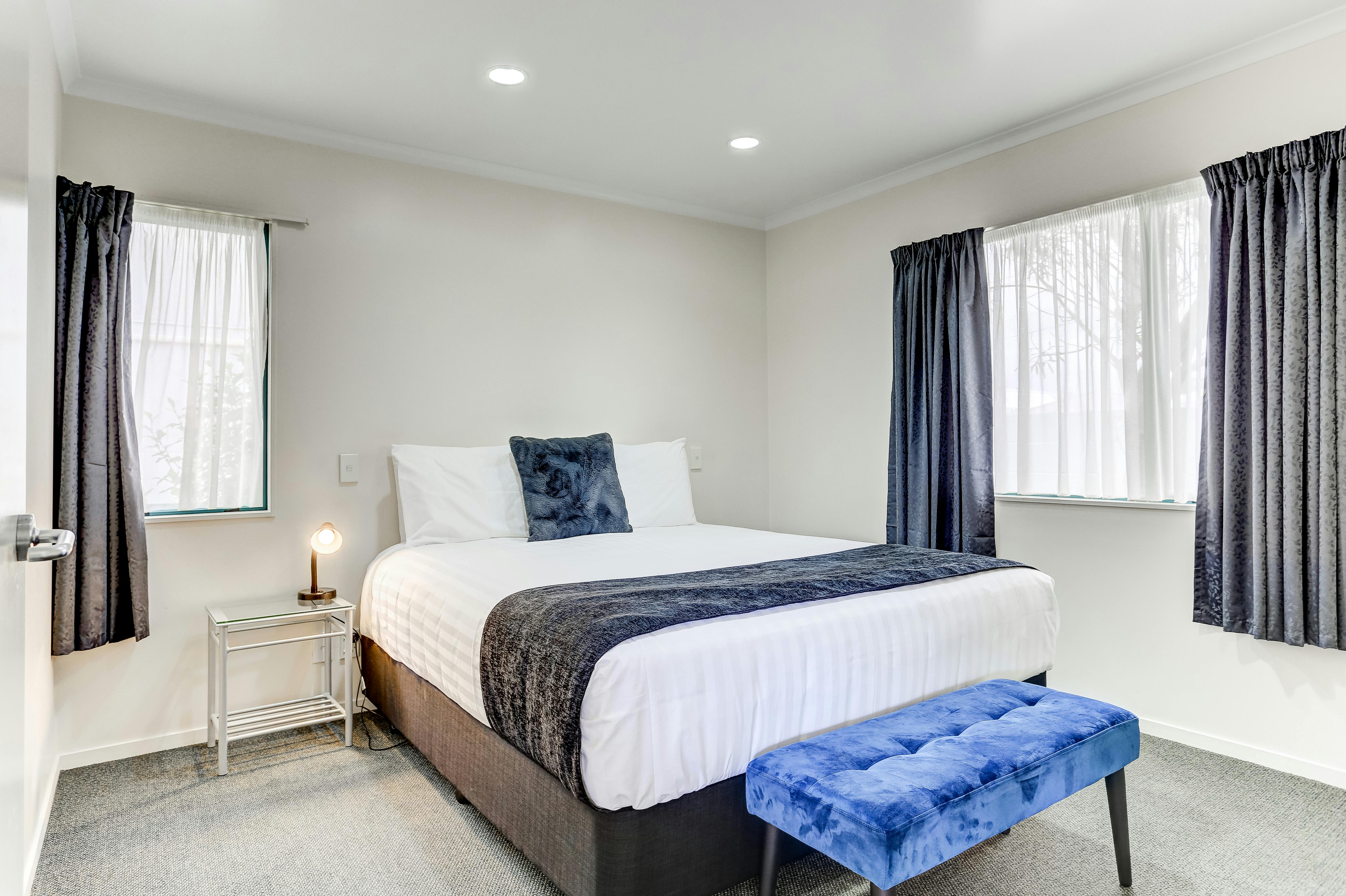 If your looking for a bit more space for your family or group then a two bedroom unit would be ideal. These units have one queen and two single beds with an extra single bed available on request. These units can sleep 4-5 people. Two bedrooms units have full kitchen facilities, a spa bath and separate shower, two TV’s each with Sky TV, a DVD player & wireless internet access.